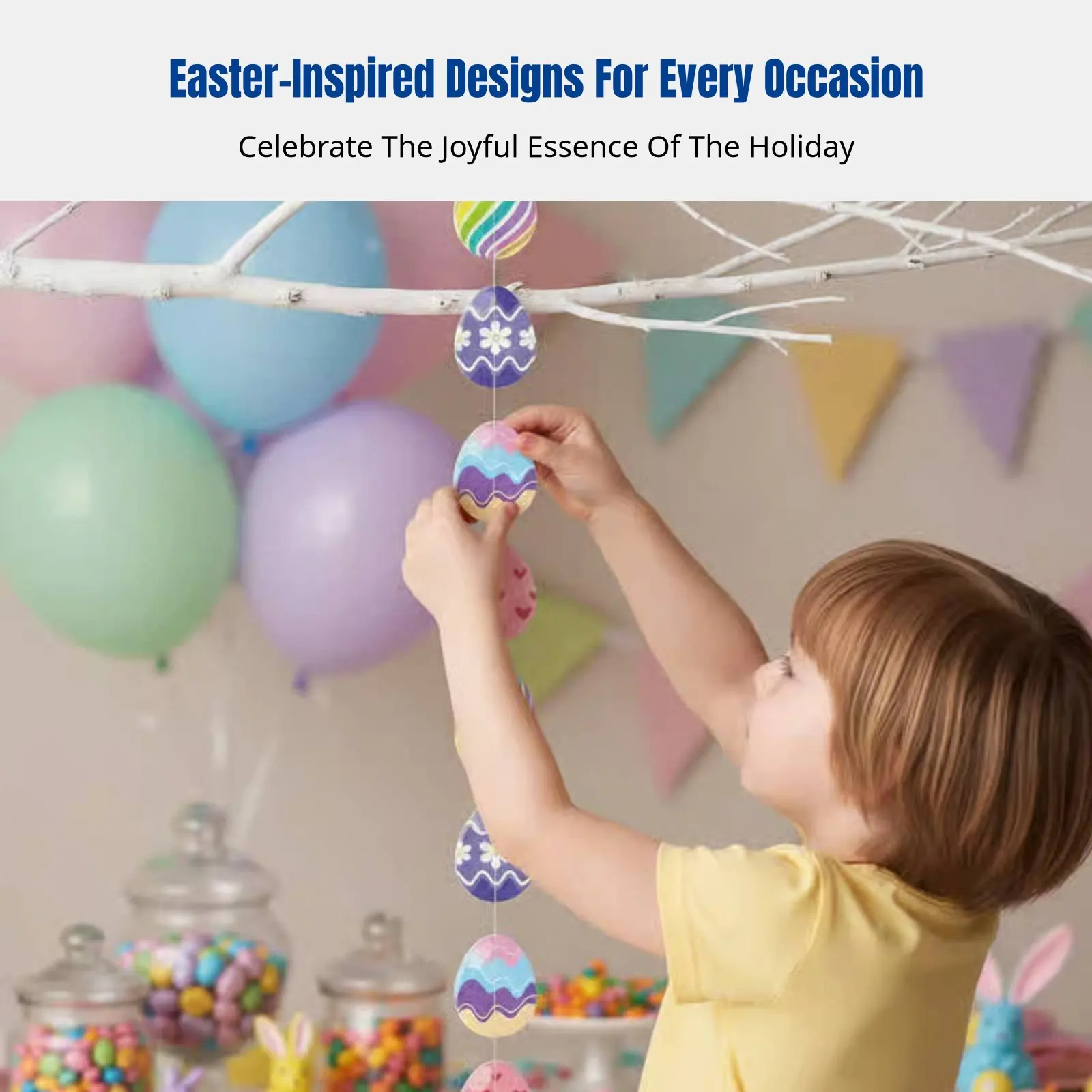 Easter Oval Banner, Paper Hanging Strip, Colorful Party Decor, Festive Home Decoration, Seasonal Decor