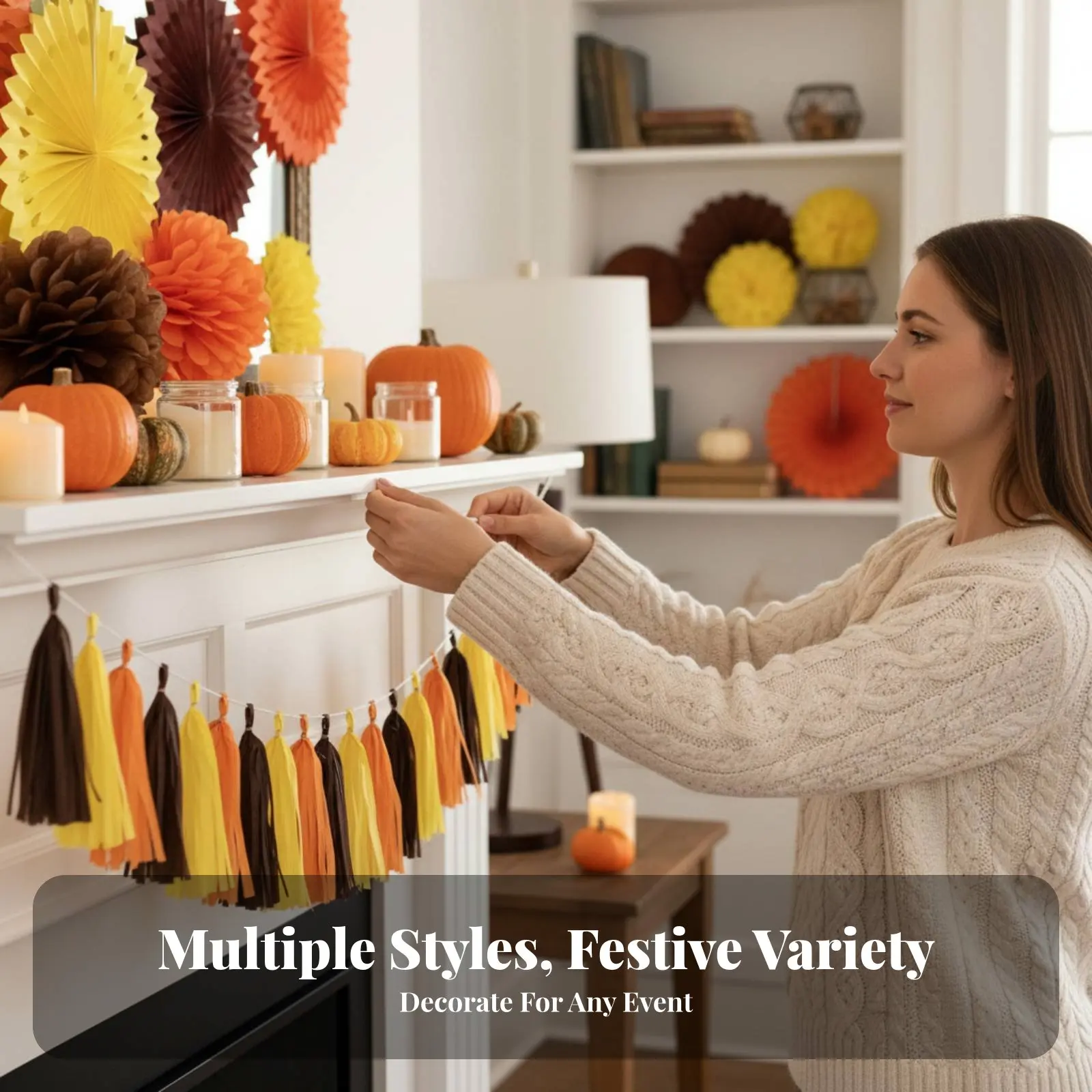 Paper Lantern, Pumpkin Hanging Decoration, Thanksgiving Halloween Party Decor, DIY Paper Fan Set