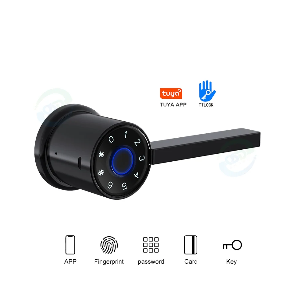 Tuya WiFi App Lever Handle Smart Lock Easy Installation Biometric Fingerprint Key Card Electronic Security TTLock Smart Lock