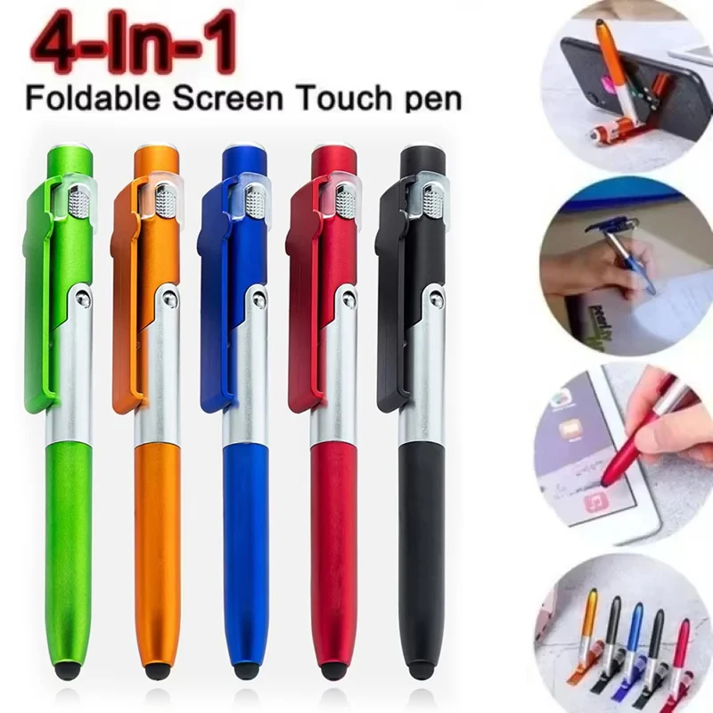 4 In 1 Multi-function Foldable Ballpoint Pens With LED Light Folding Stand For Mobile Phone Holder Night Reading Stationery Pen
