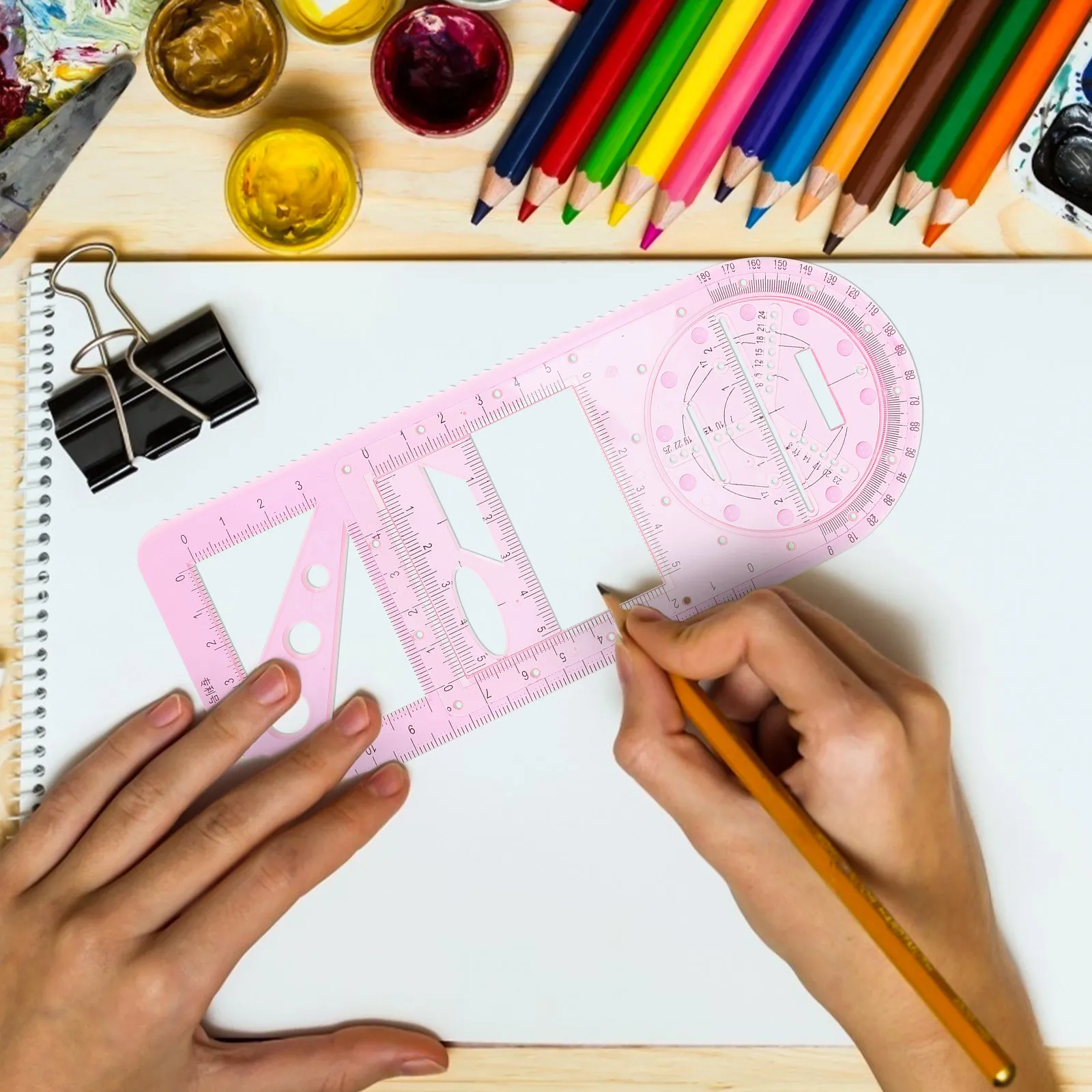 Multifunctional Geometric Drawing Ruler Mathematics Draft Template Set School Supplies Measuring Tool for Students Teachers