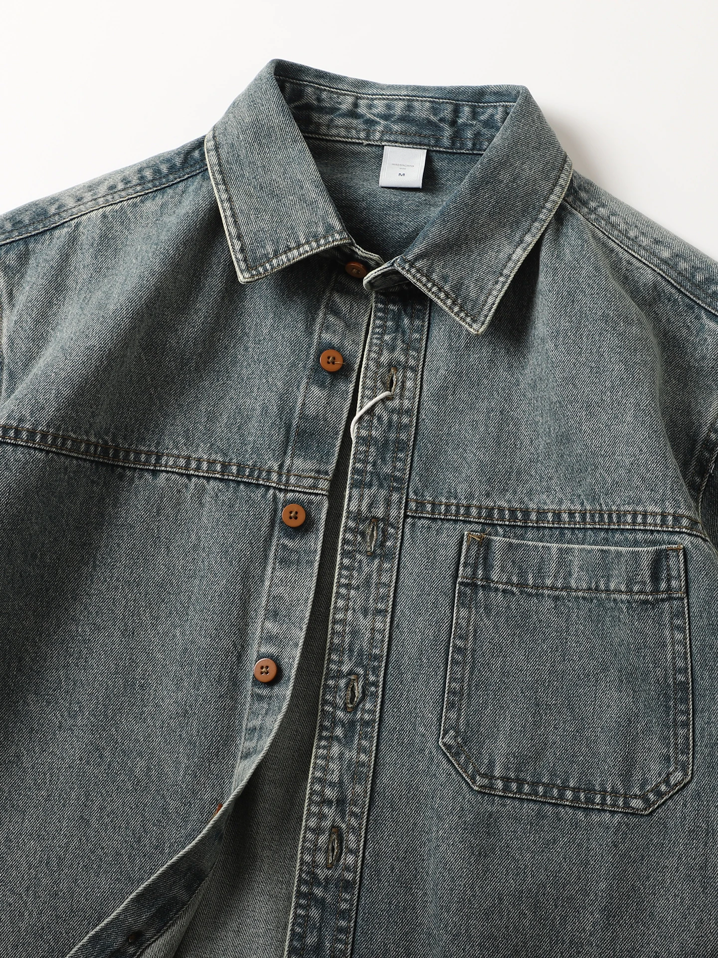Retro Thi Denim Long Sve Men's Casual irt Jaet Sli Resistant to Deformation Cotton Polyester Blend American Sle