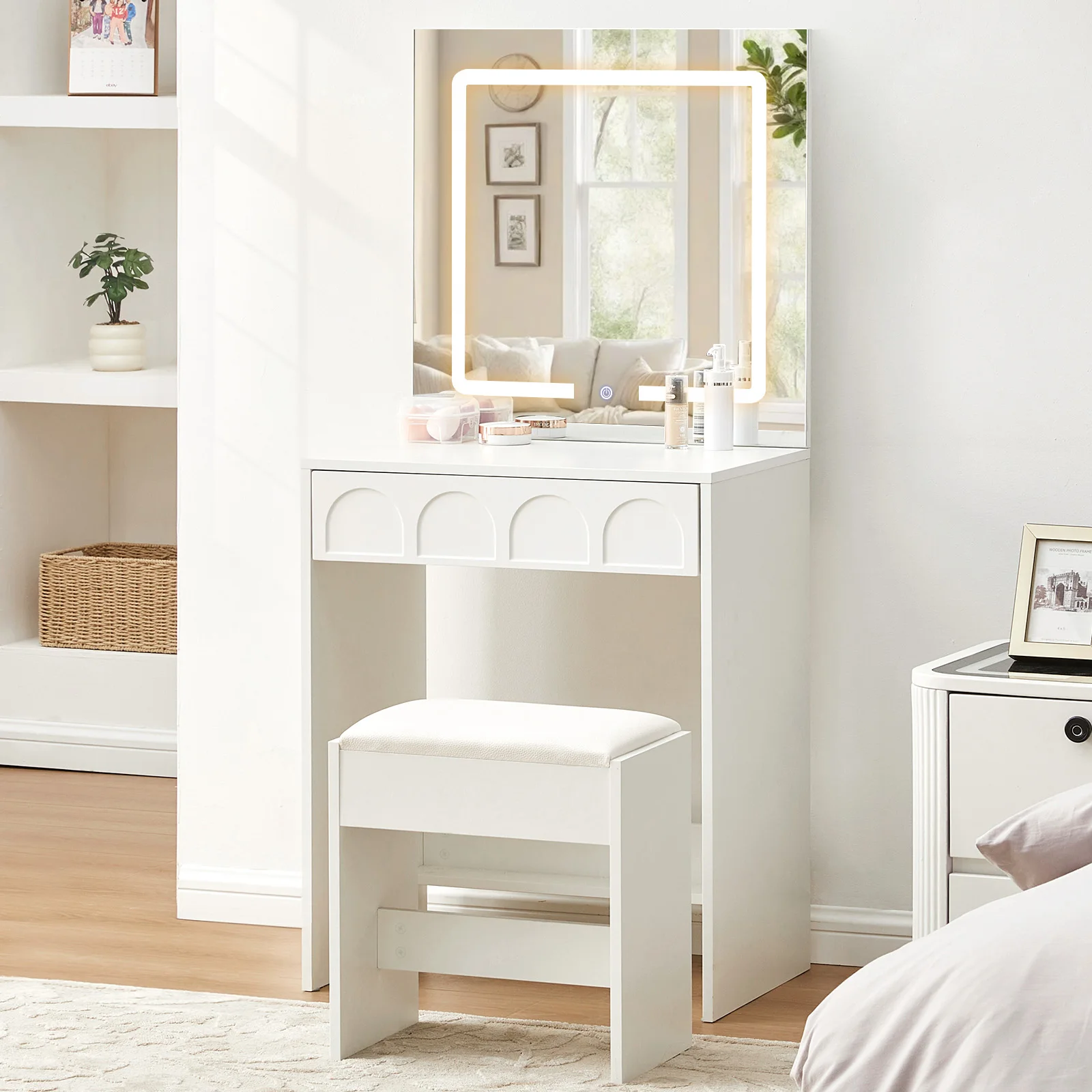 Mini Led Mirror Hairdressing chest of drawers, Adjustable Brightness