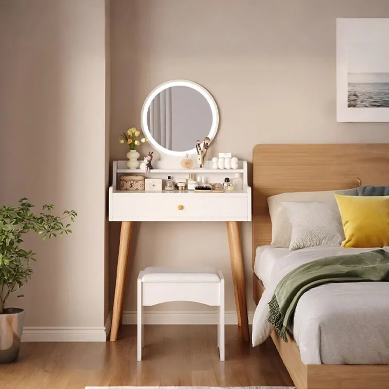 Modern Simple Bedroom Dressing Table Lighted Makeup Vanity Flip-Cover Small Apartment Storage Cabinet Multi-Functional Bedside