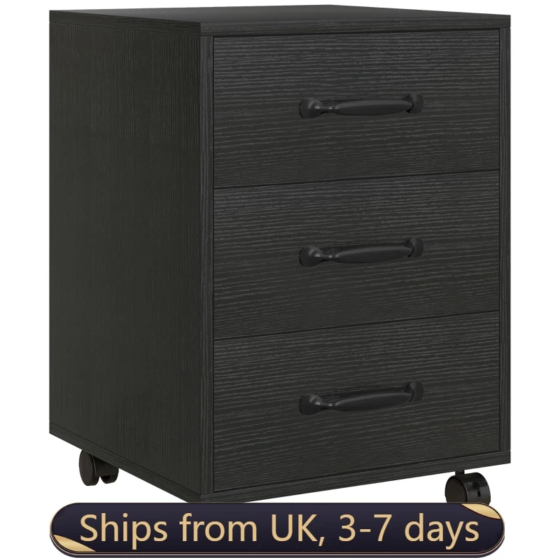 3-Drawer Mobile Filing Cabinet on Wheels, Black, Home Office Storage