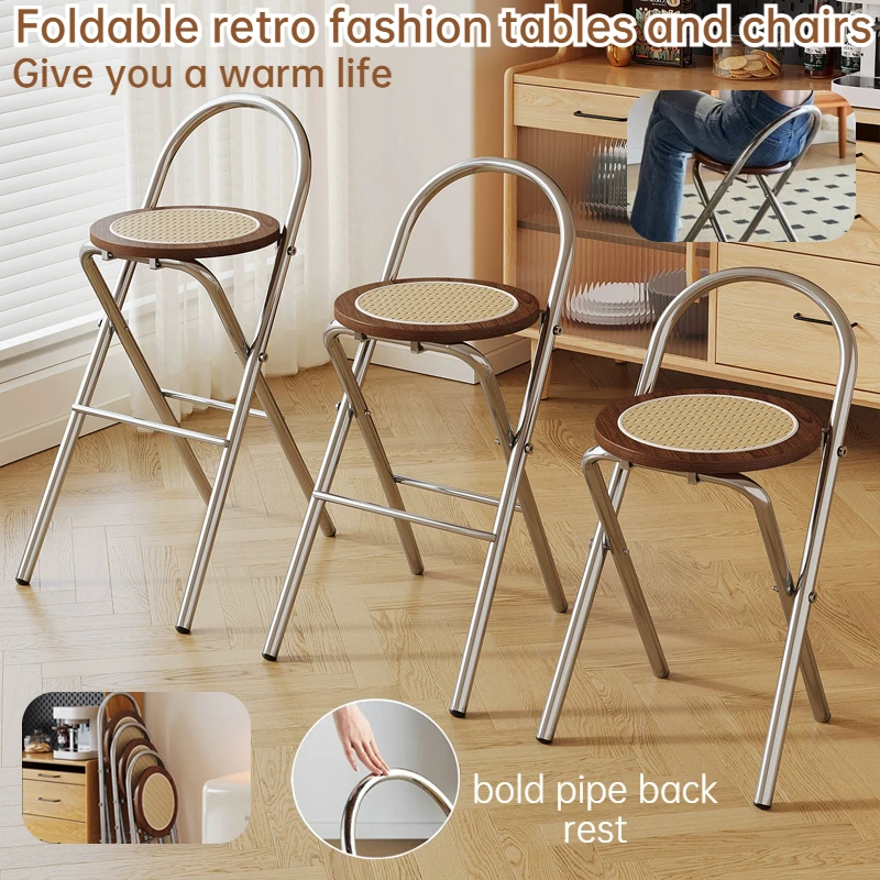 Foldable Dining Chairs Portable Wooden Backless Dining Stool Kitchen Counter Bar Stool Lightweight Stackable Home Restaurant