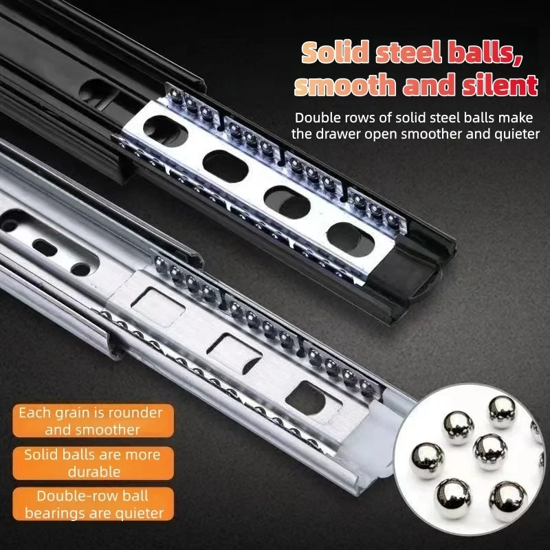Heavy duty cold-rolled steel drawer slide rail -3-section soft closing damping rail, silent cabinet slide rail