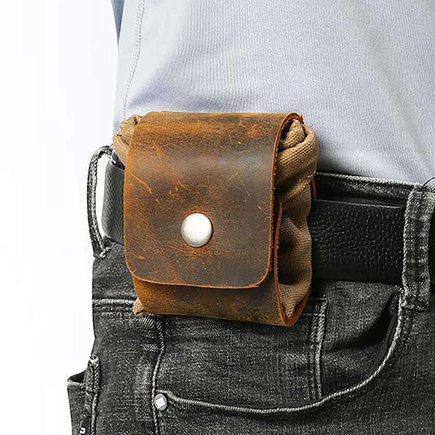 "Crazy Horse Genuine Leather Coin Purse Canvas Waist Bag Foldable Outdoor Camping Picking Bag for Orchard Garden Size 10x7.5x3cm