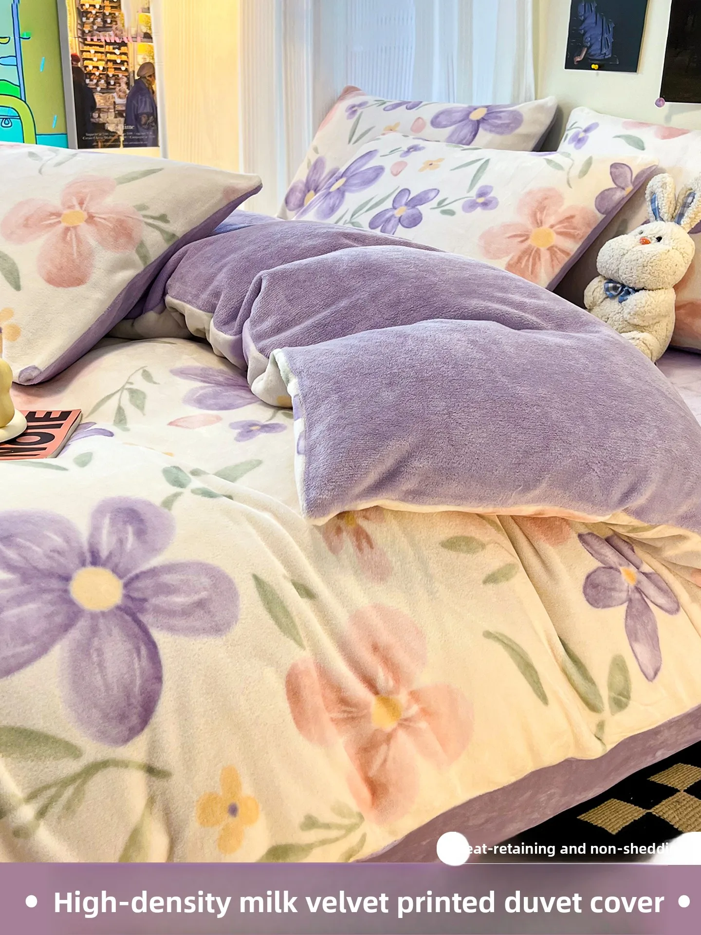 Winter Purple Milk Velvet Coral Fleece Single Piece Duvet Cover 200x230 Individual Quilt Cover 15 Meters Home Bedding Covers
