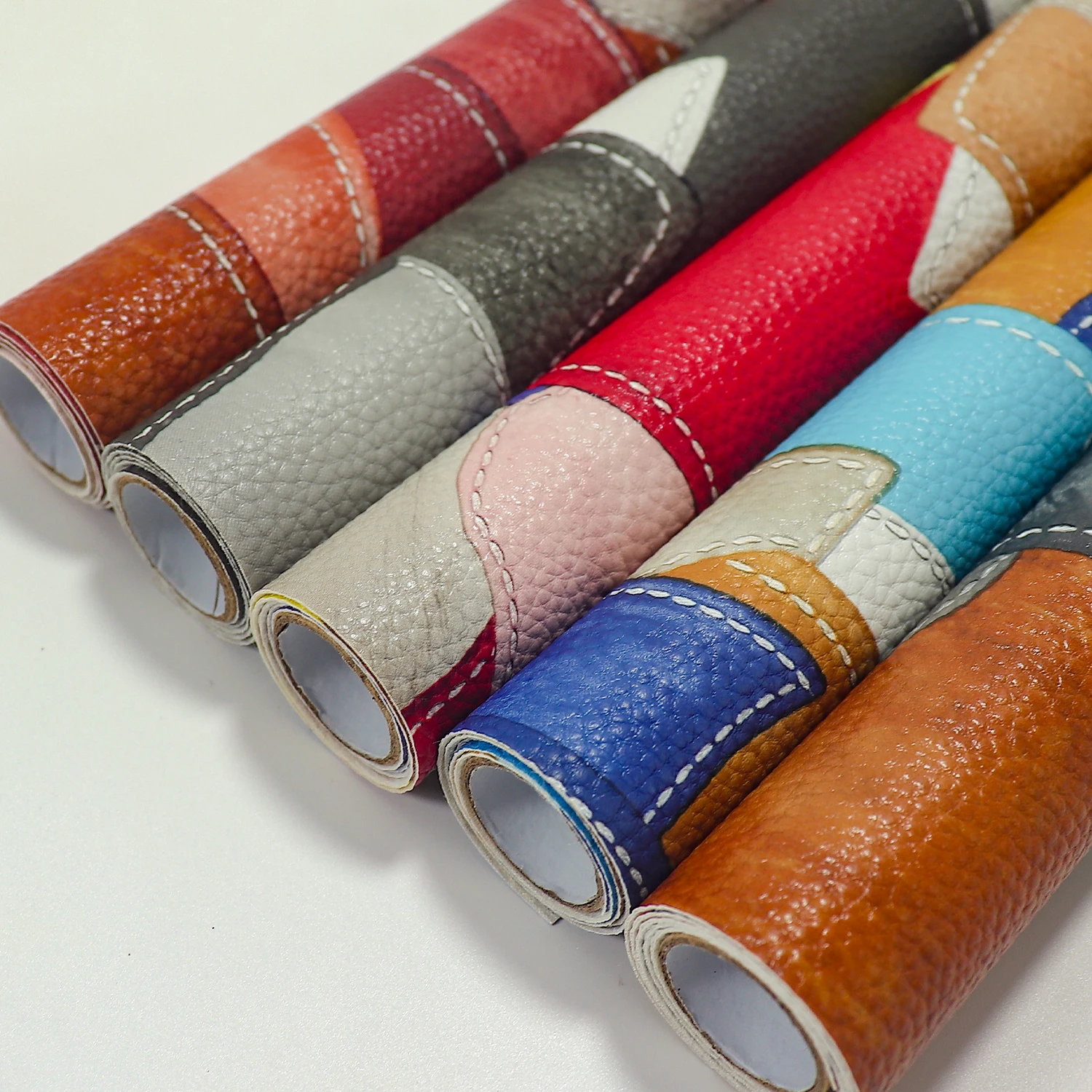 Multi Color Splicing PVC Faux Leather Pieces White Line Decoration Flexible Cuttable 0.7mm Thick for Handbag Wallet Handicrafts