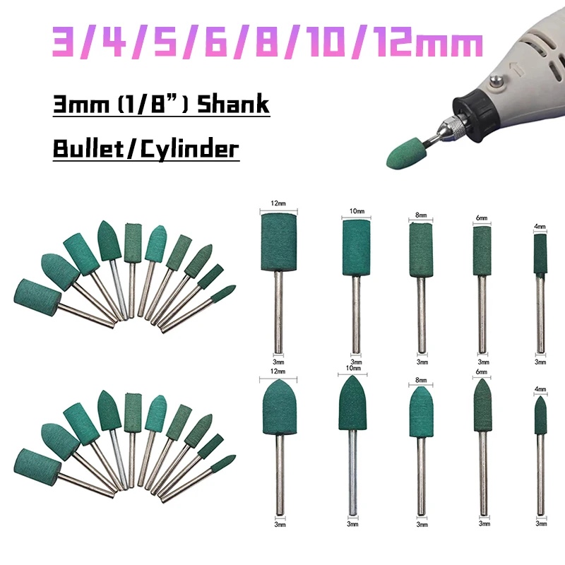 5/10Pcs Rubber Abrasive 1/8'' 3mm Shank Grinding Head for Mold Metal Polishing Dremel Rotary Tools 3mm/4/mm5mm/6mm/8mm/10mm/12mm