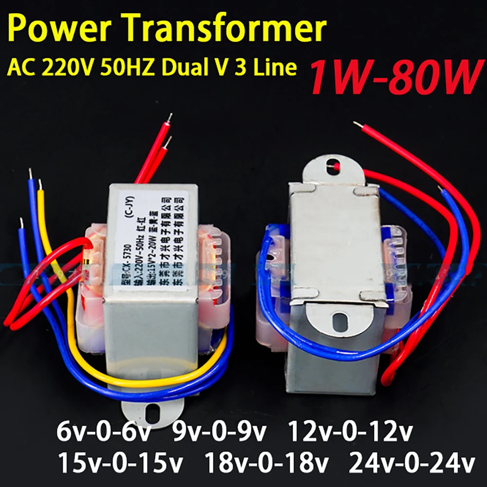 Power Transformer Input AC 220V 50HZ Output AC (6V-0-6V)~(24V-0-24V) Dual V 3 Line Power Transformer Converter 1W-80W
