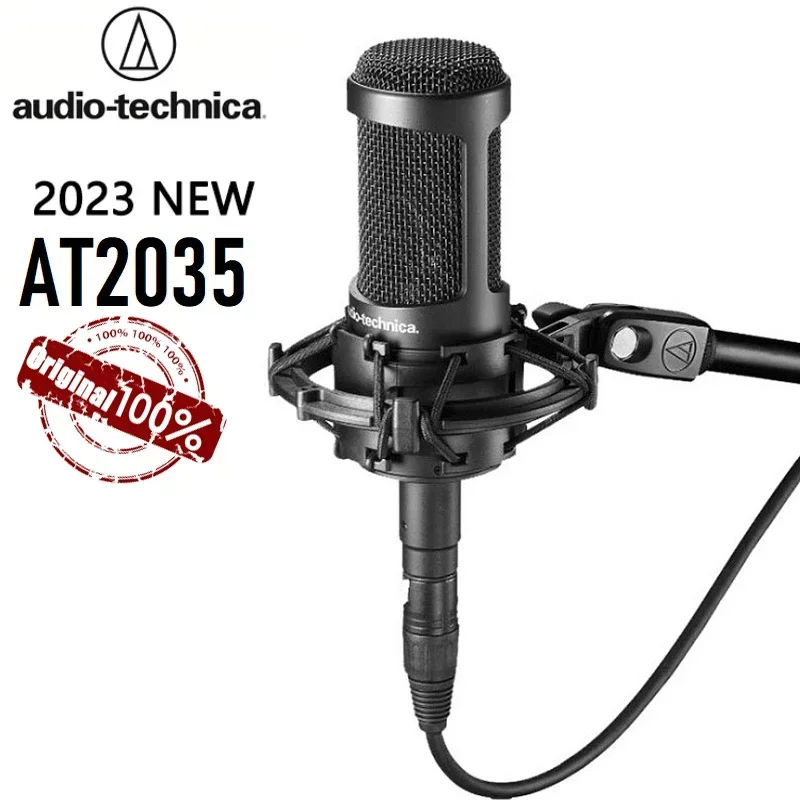 100% Original Audio Technica AT2035 Condenser Microphone Wired Gaming Video Studio Record Laptop Live Professional Karaoke Mic