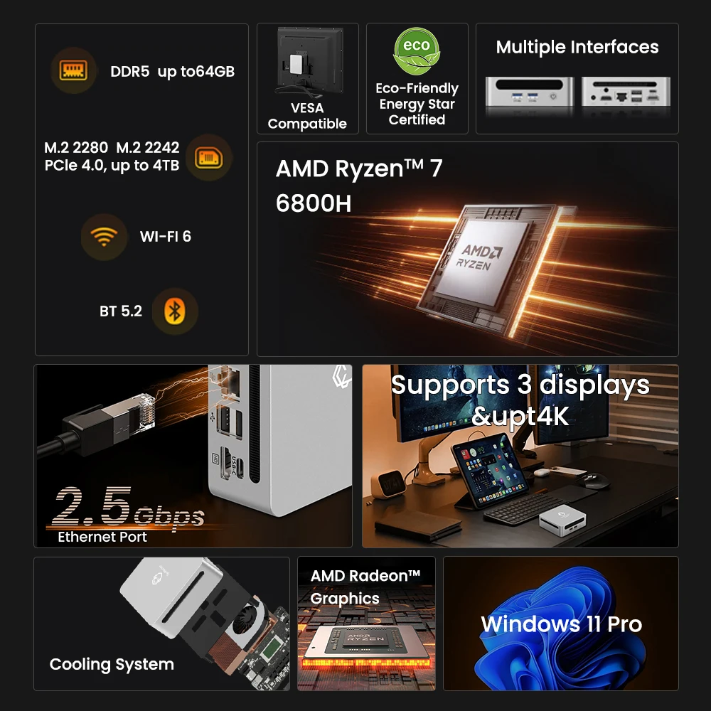 GMKtec K8 Plus Mini PC AMD R7-8845HS NUCBOX Window 11 Pro AMD Radeon™ 780M Oculink*1(PCIE GEN4*4)) DDR5 5600MHz