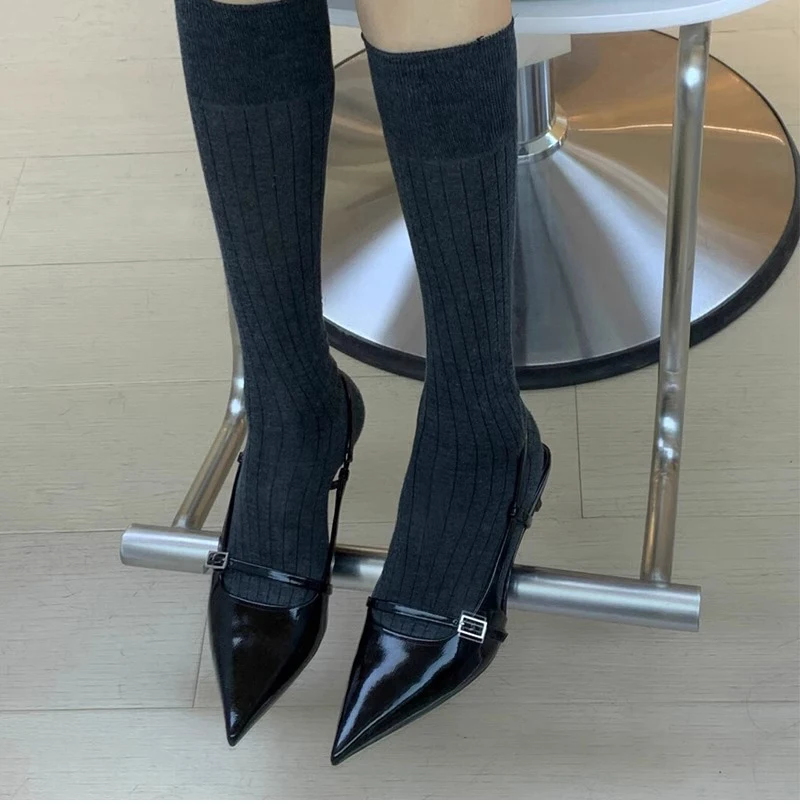 Summer and Autumn Simple Pointed Kitten with British High-Heeled Strap High-Heeled Sandals Shoes for Women