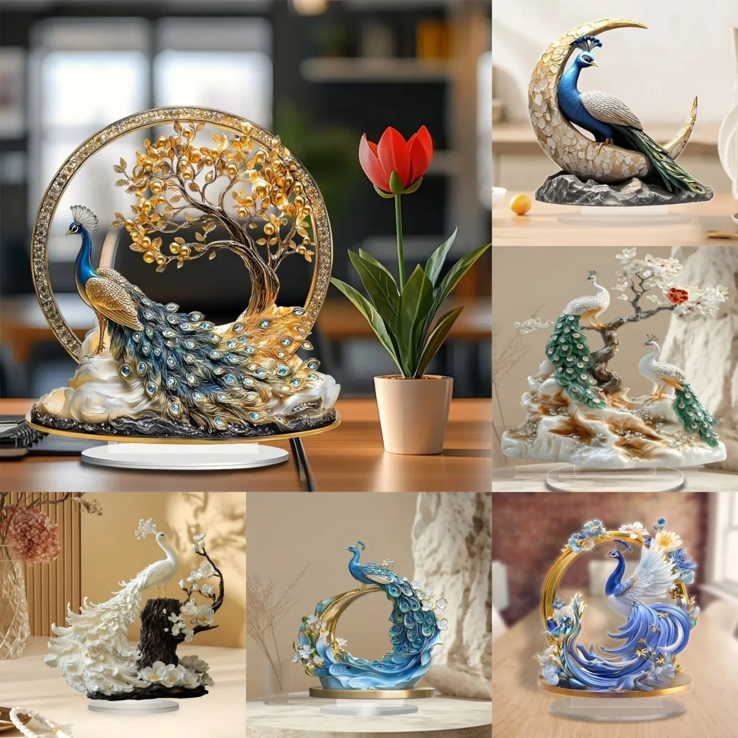 Pretty Peacock &tree Statue, 2D Flat Acrylic Figurine,Home,Office,Cafe,room,Studio,display Case,Table Ornament Desktop Decor Kit