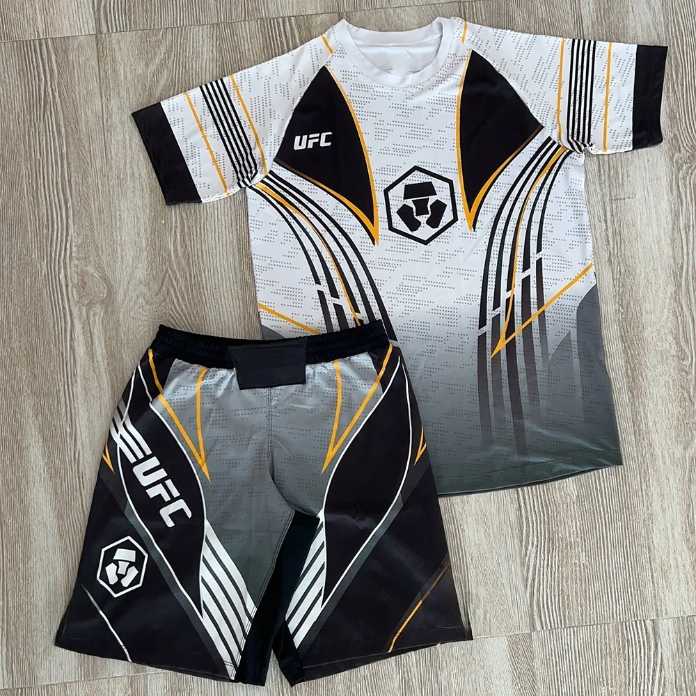 2026 New Hot Summer UFC Retro Fighting Night Boxing Set Men MMA Oversized Breathable Speed Drying Training Jujutsu Sports Set