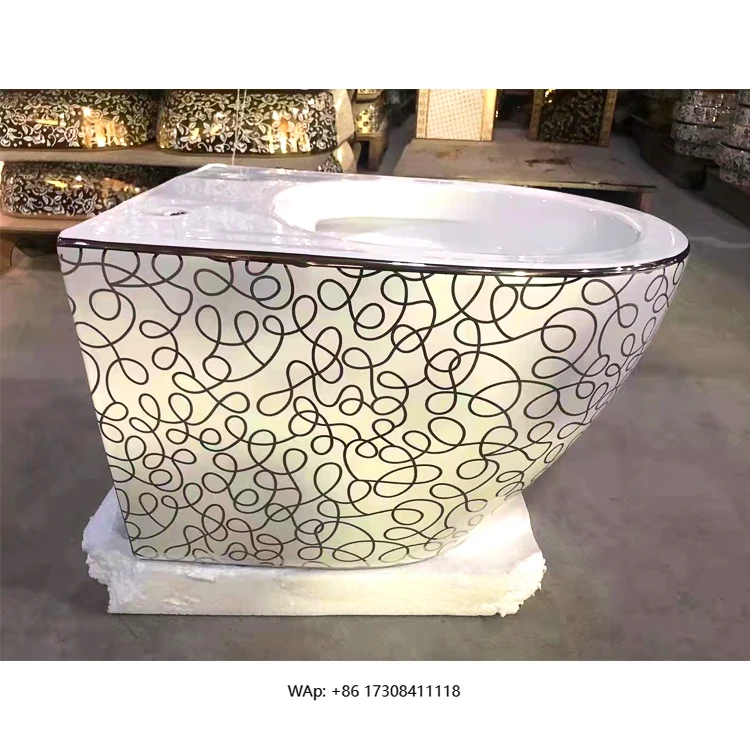 Gold Black Toilet Bowl Mesh Ceramic Prefab Luxury Bathroom Art Wall Hung Wash Basin Toilet