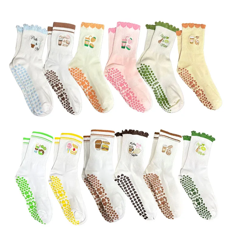 European sizes 36-43, 1 Pair of Heart-Shaped Lace Embroidered Yoga Socks, Mid-Calf Length, for Women