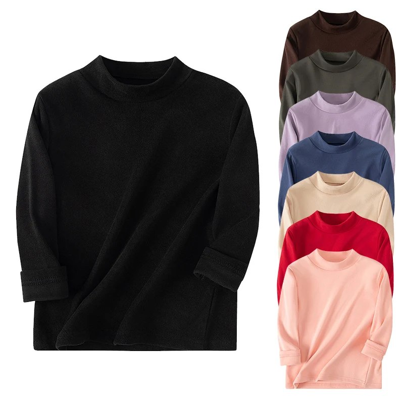 1/2/3piece Children's Autumn And Winter Warm Mid Neck Solid Color Base Casual Top T-shirt Boys And Girls Brushed Sports Pullover