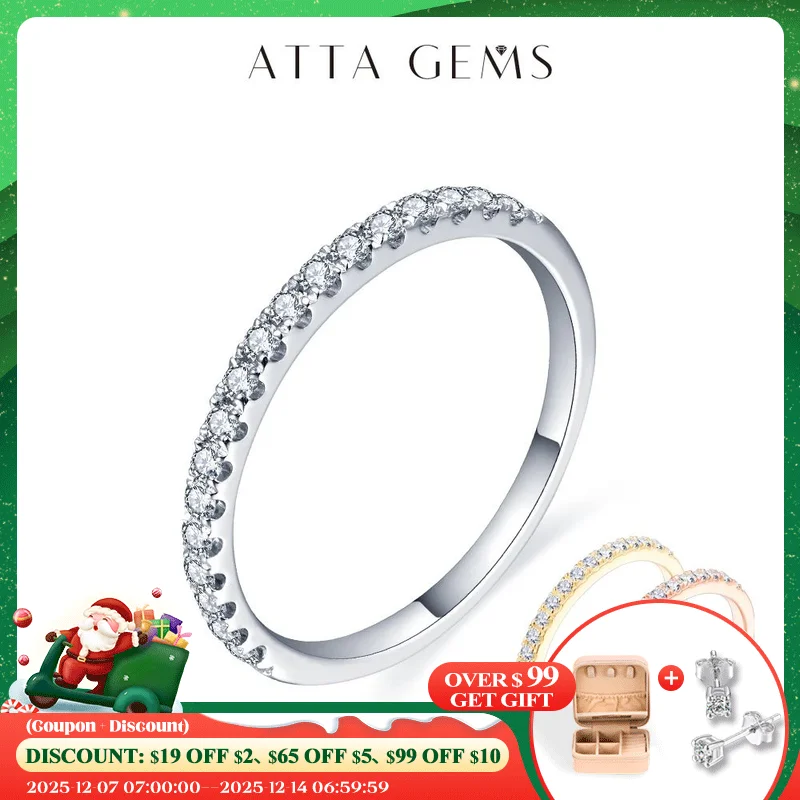 ATTAGEMS 925 Sterling Silver White Gold Round Excellent Cut Moissanite Ring for Girls Cocktail Jewelry