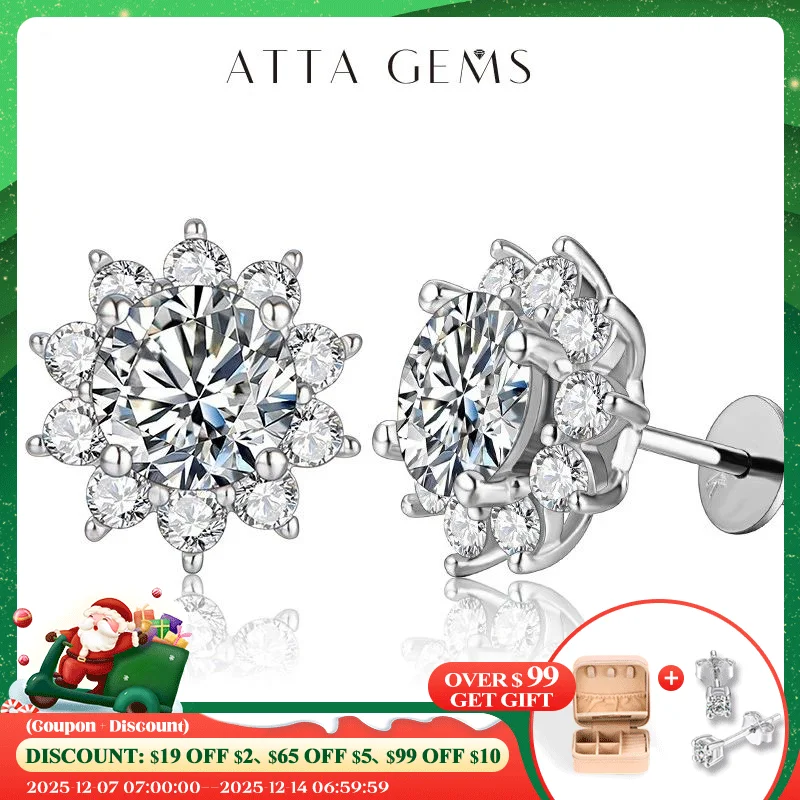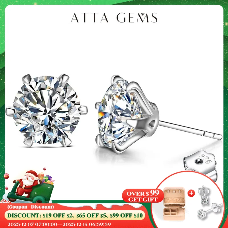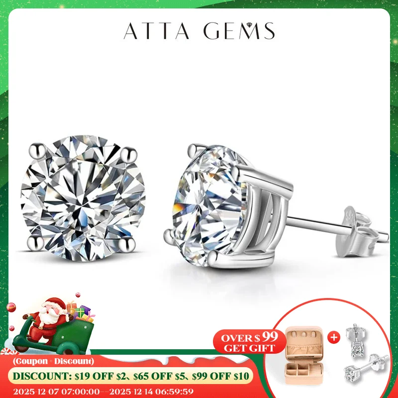 ATTAGEMS 2 Carat 8.0mm D Color Moissanite Stud Earrings For Women Top Quality 100% 925 Sterling Silver Sparkling Wedding Jewelry