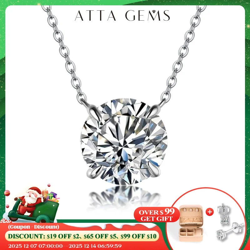ATTAGEMS 925 Silver Necklace Pendant Round Cut 1.0ct D Color White Moissanite Pass Diamond Test for Women Elegant Necklace