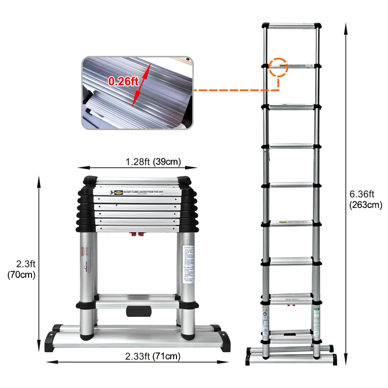 Factory Custom Wholesale 2.6M Telescopic Folding Multifunctional Chevron Aluminum Ladder