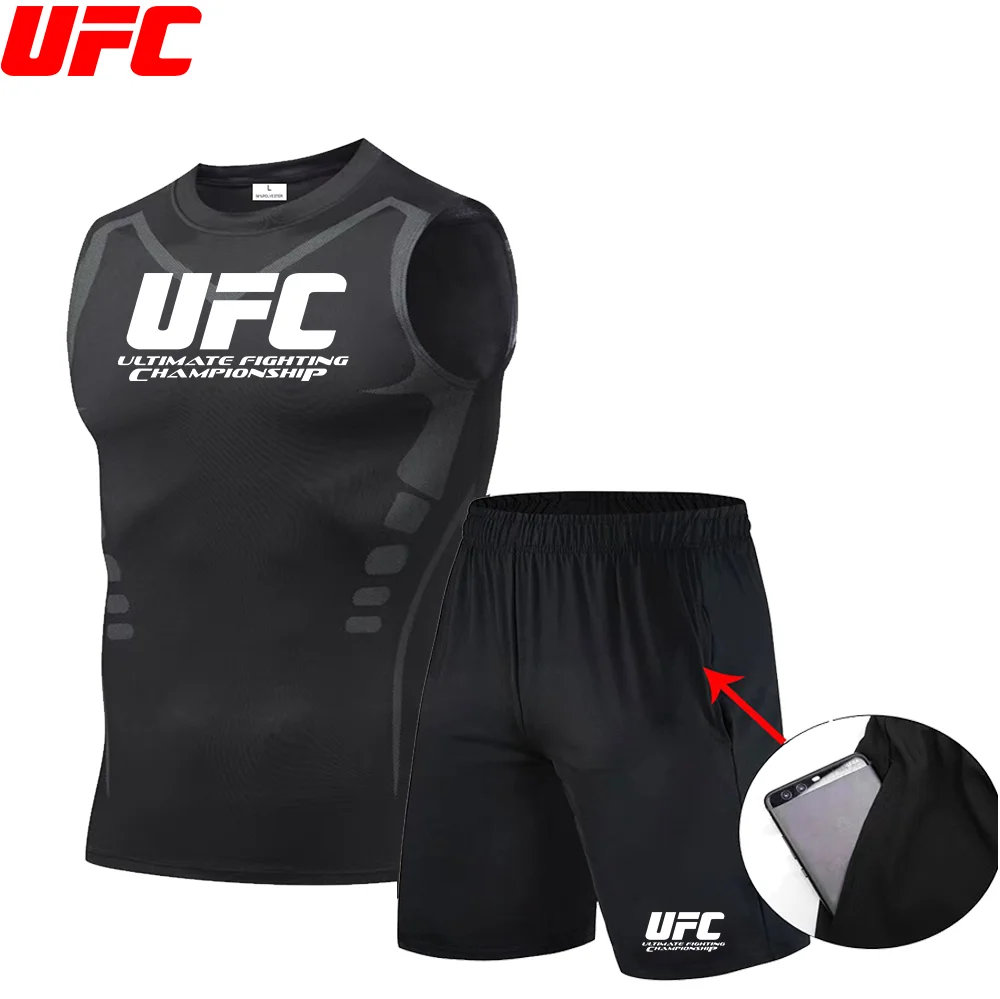 UFC Singlet Shorts Sports Suit Mens Running Sets Compression Gym Fitness Sportswear Quick Dry Outdoor Jogging Training Underwear