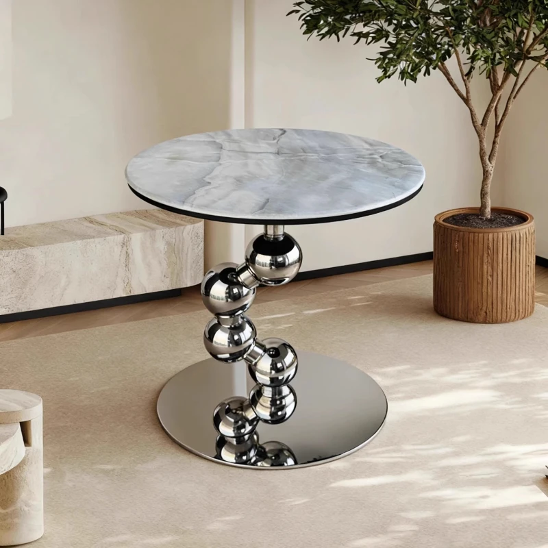 Light Luxury Side Table Sofa Slate Small Coffee Tables Marble Corner Simple Movable Round Balcony Mesa Living Room Furniture