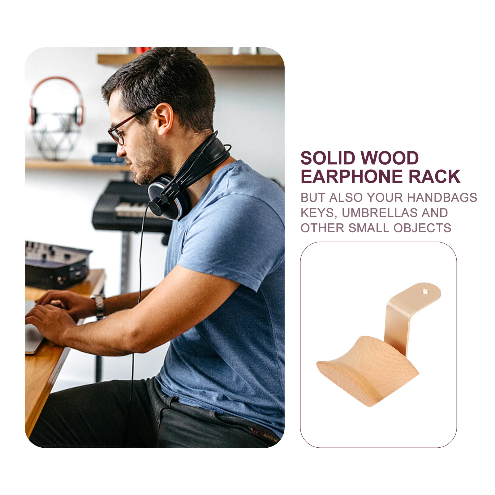 Solid Wood Headphone St Hanger Hook Desk Holder Storage Rack Earphones Bracket Bedroom Kitchen Living Room Practical Hanging
