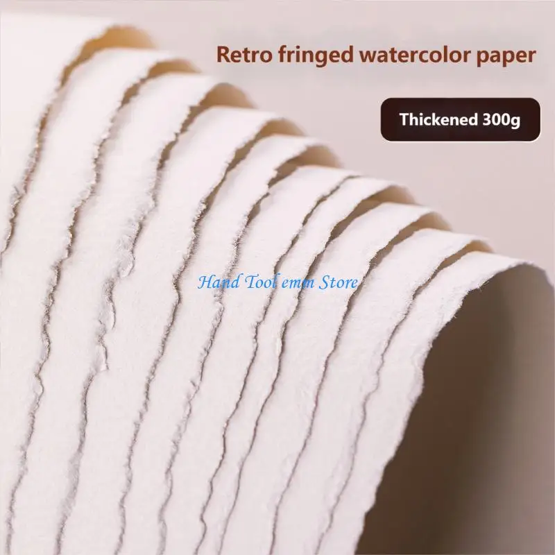 H37F 10 Sheets 300g Cotton Deckle Thick White Art Paper Set For Watercolor Sketching Drawing Practice Premium Qualities