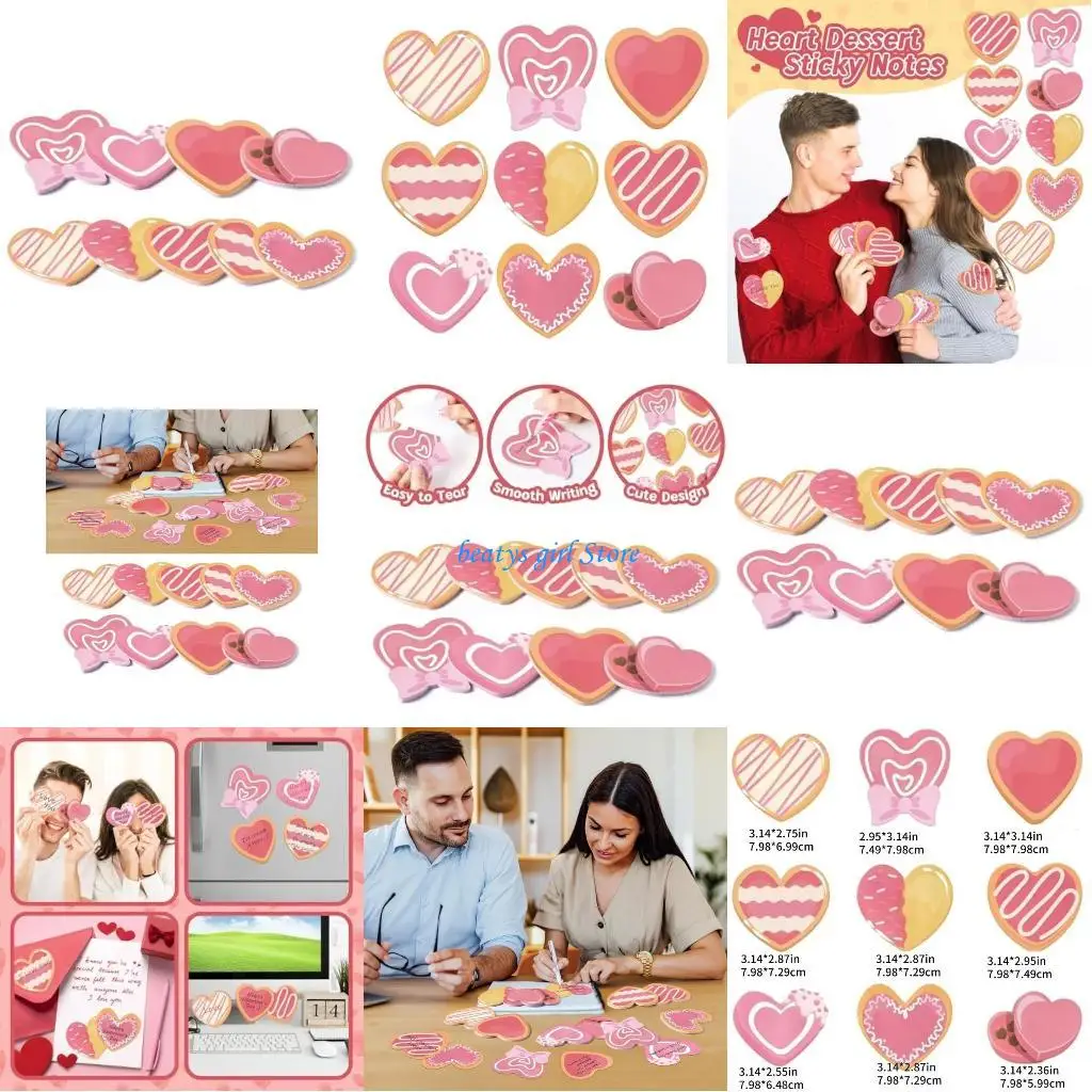 C7AB 9Pcs Heart Notes Self-Stick Memo Note Writing Pad Self-Adhesive Diary Page Notepads for Office School Use