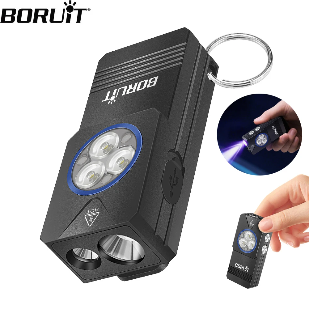 BORUiT EV30 LED Keychain Flashlight 550LM TG3 365nm UV Light Type-C Rechargeable Mini Torch Magnetic Work Light Pocket Lantern