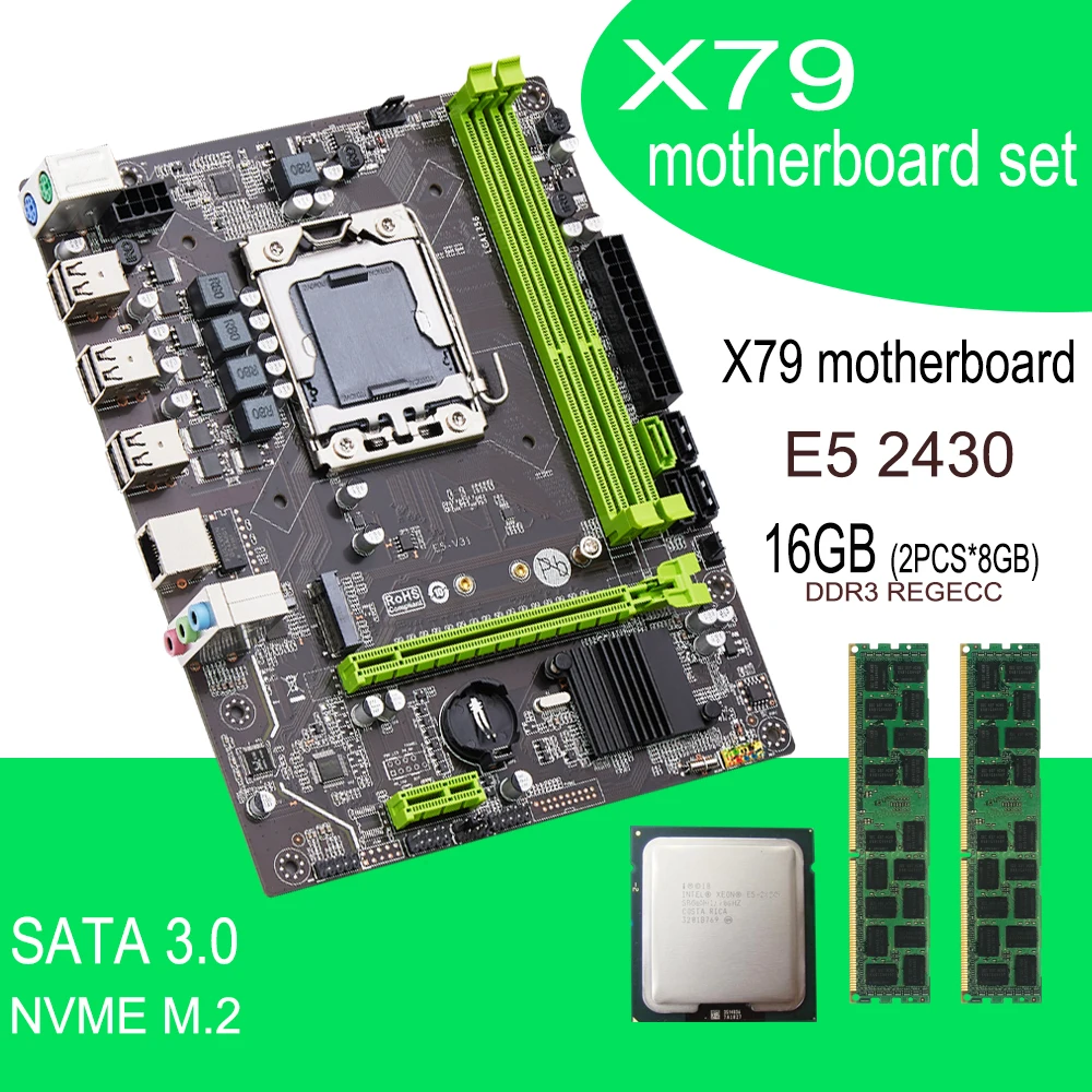 Qiyida X79 Motherboard set E5 2430 2*8GB=16GB DDR3 memory combo kit set NVME SATA USB PCI16x M ATX Server E5 V32