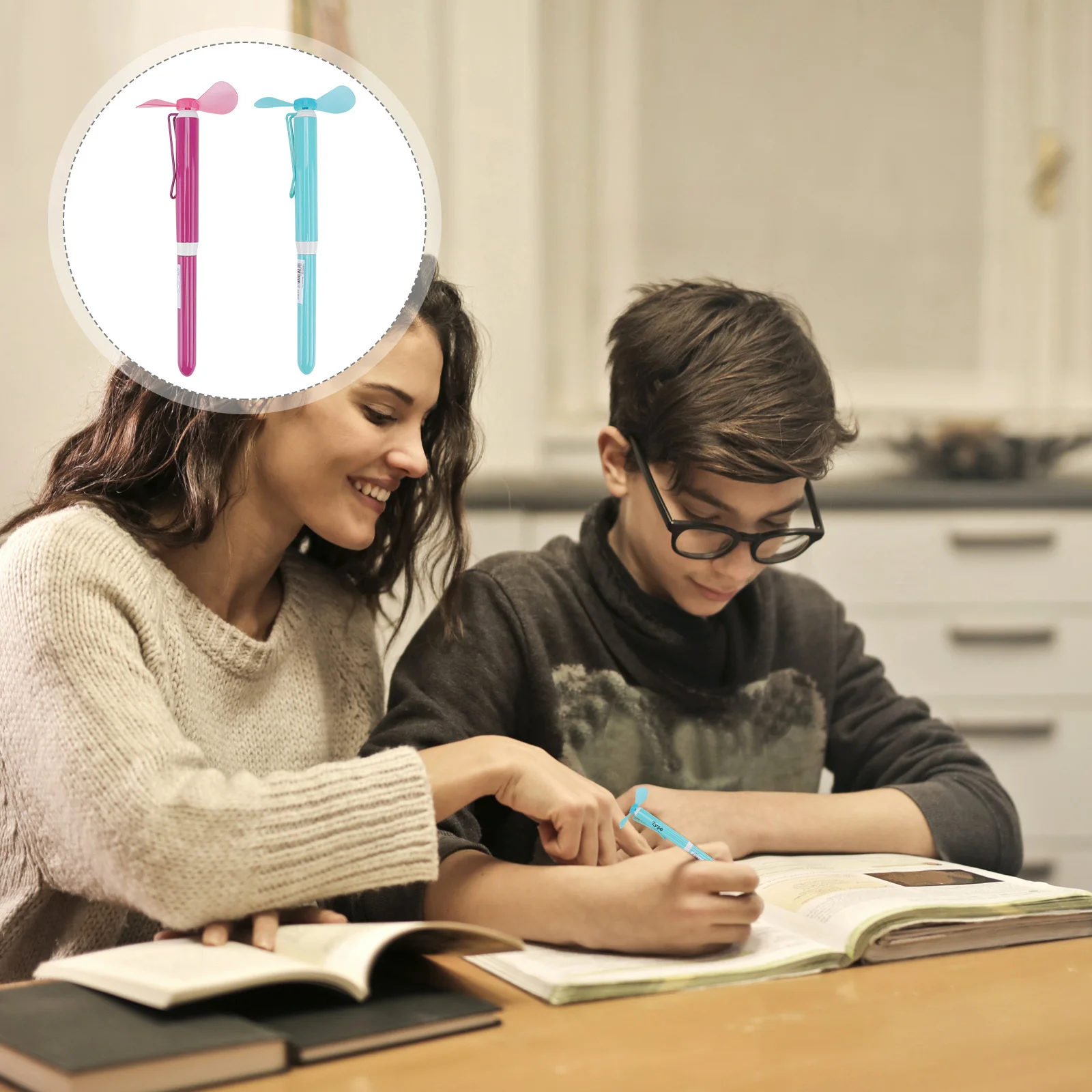 2pcs Mini Fan Pen Ballpoint Metal Portable Cool Writing Tool For Students Kids Creative Stationery Study Supplies Fan Pens