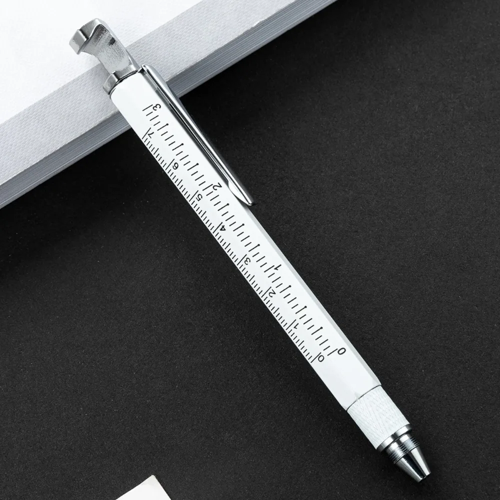 Durable Metal Multi Tool Pen 7-in-1 With Bottle Opener Screwdriver Ruler Ballpoint Pen Woodworking Pen Construction Tools
