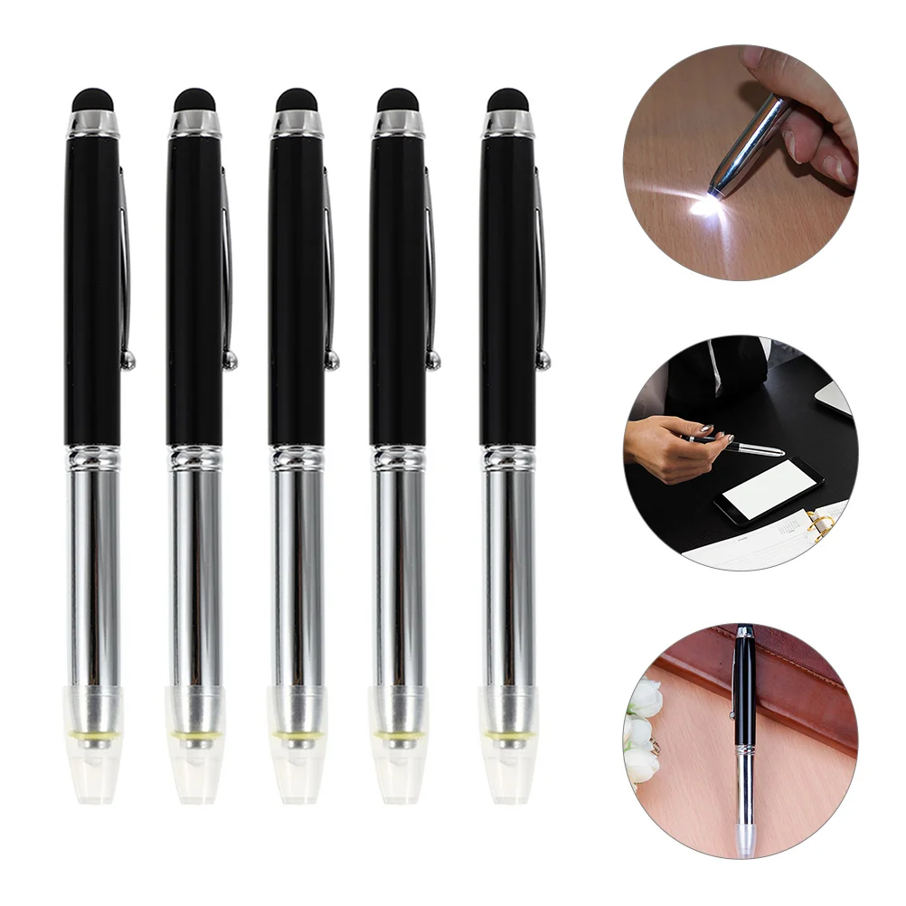 5pcs Touch Screen Capacitive Pen Led Stylus Fine Point For Phone Tablet Pc Lightweight Compact 3 In 1 Ballpoint Pen With Light