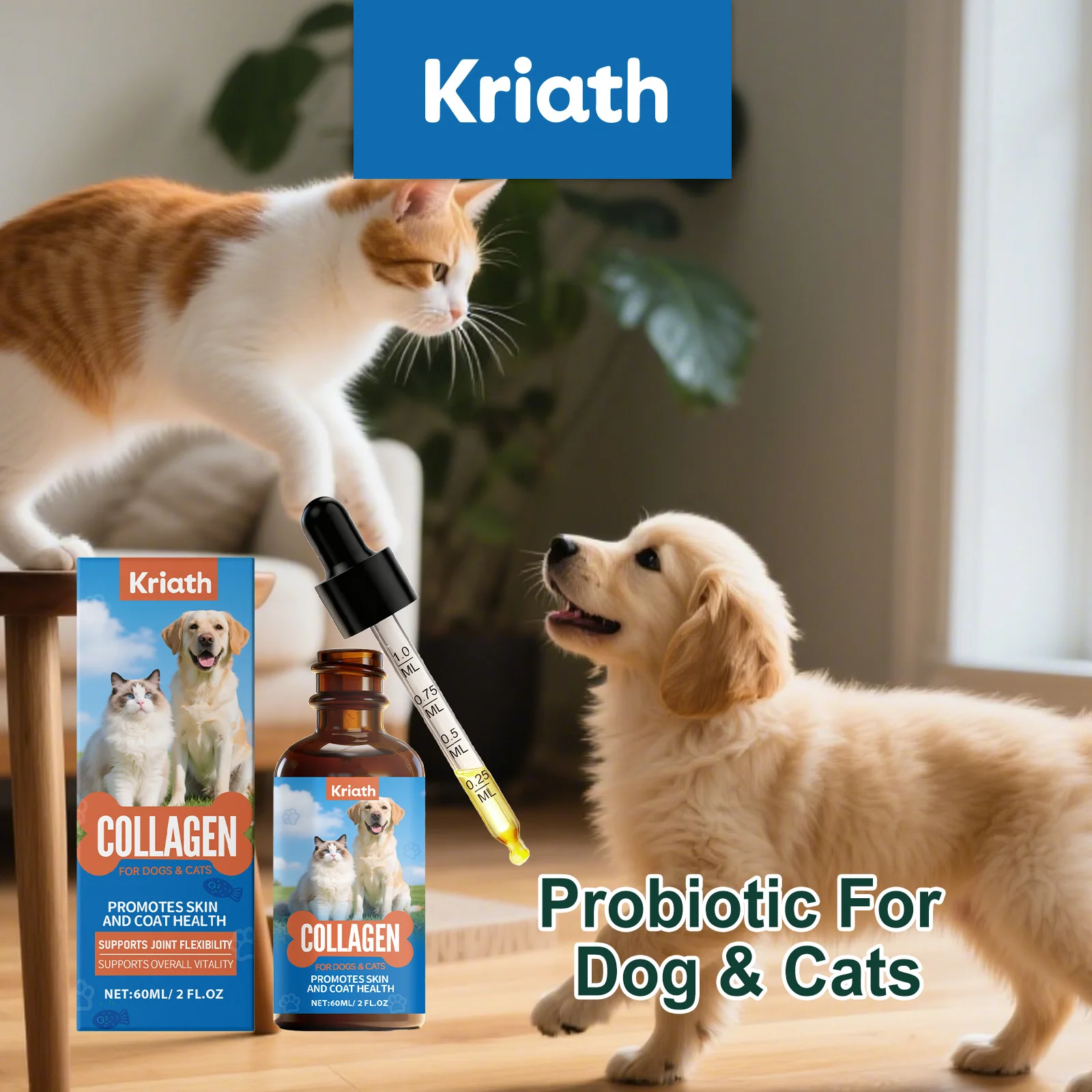 Liquid Collagen Drops for Cats & Dogs - Gentle Formula Daily Pet Nutritional Supplement Support Digestive Health Immune Care