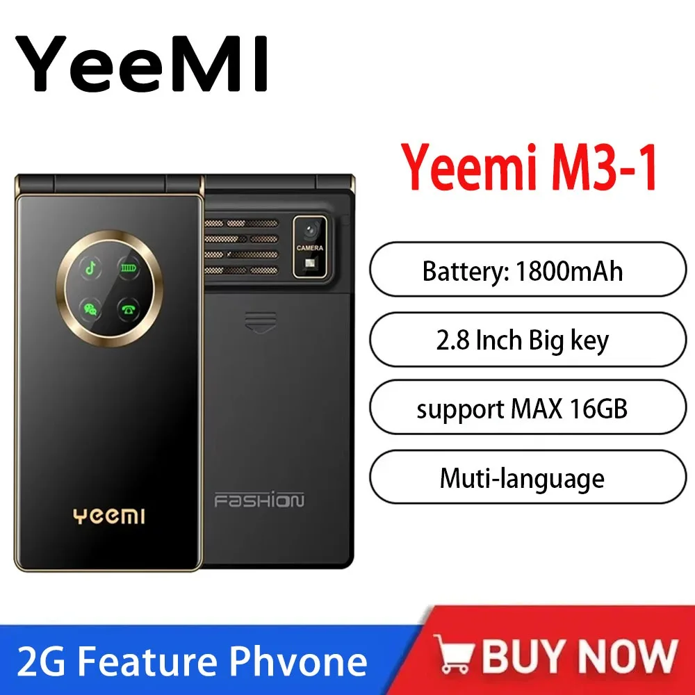 Yeemi M3-1 2G Feature Phone Big Push-Button Flip Phone 2.8 Inch Dual SIM 1800mAh FM Radio Cellphone For Old Man Russian Keyboard