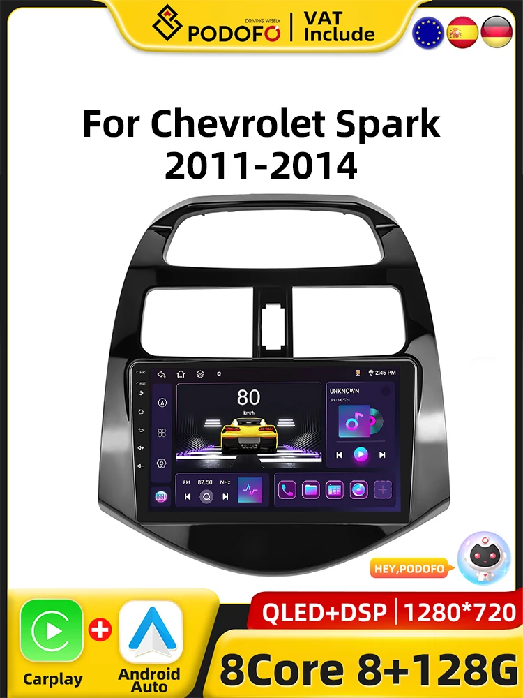 Podofo 4G CarPlay Android Radio For Chevrolet Spark 2011-2014 Car Intelligent System 2din GPS Stereo Head Unit Multimedia Player