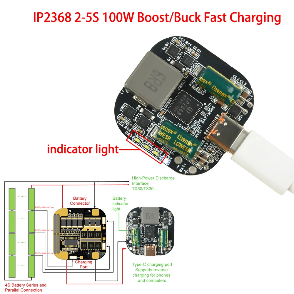 IP2368 2-5S Bidirectional 100W Fast Charging Module Buck-Boost Type-c Interface Lithium Battery High-Power Fast Charging Board