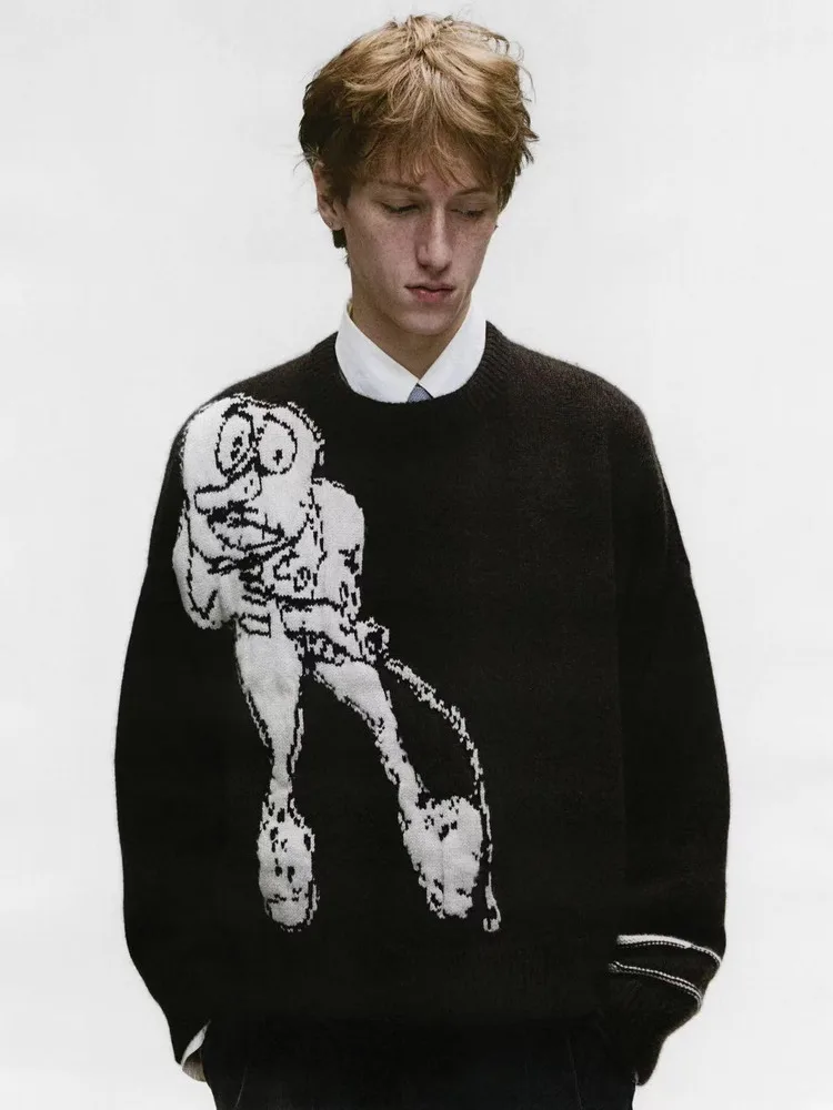 Alien Pattern Knitted Sweater round Ne M Fem Universal Retro Sle Long Sve Casual Inner Wear Non Deformable