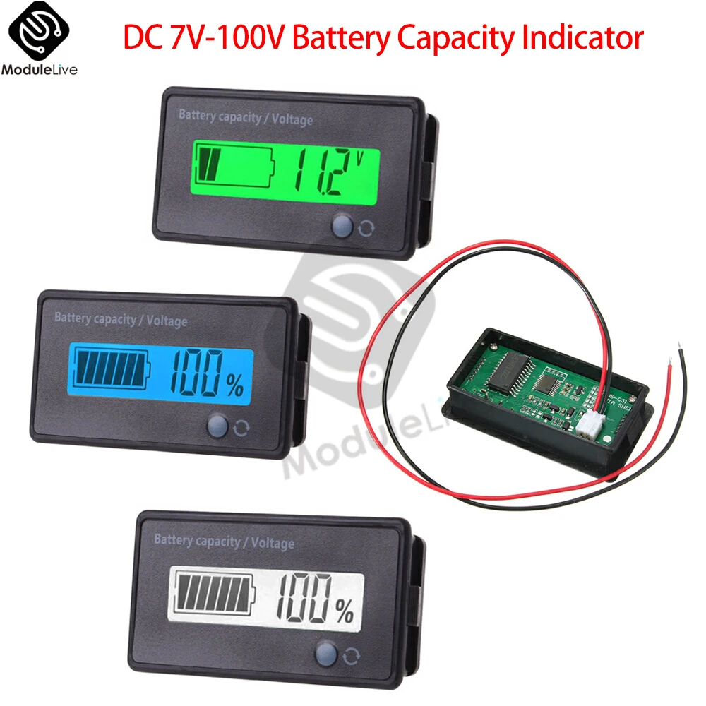 DC7-100V Lithium Lead Acid Battery Capacity Indicator Power Display Meter 9V 12V 24V 48V LED Digital Voltmeter Voltage Tester