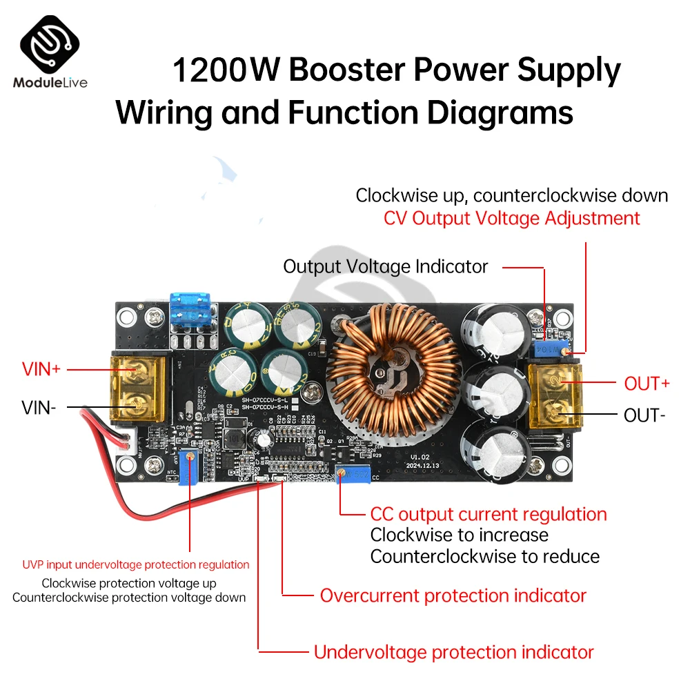 1200W 20A Boost Power Module DC-DC 14-85V Boost Converter Constant Voltage Constant Current Adjustable Voltage Converter