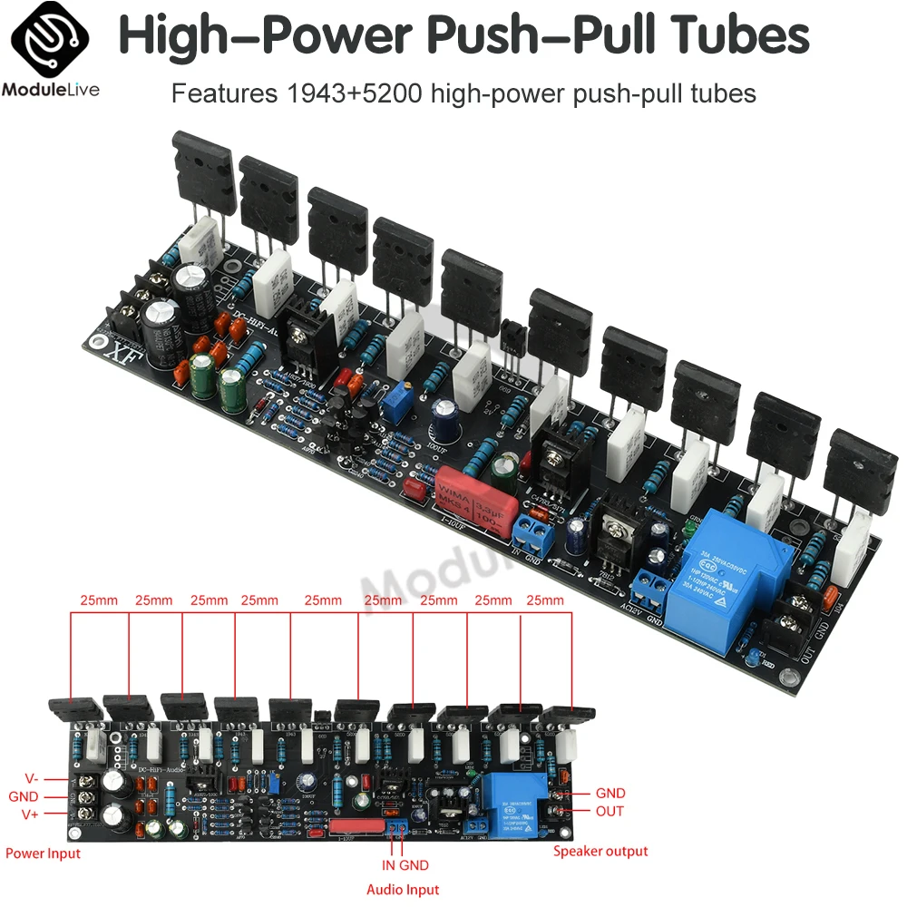 DC20V-90V 500W Single Channel Power Amplifier 1943+5200 Mono HIFI High-power Audio Amplifier Circuit Board Speaker Protect Relay