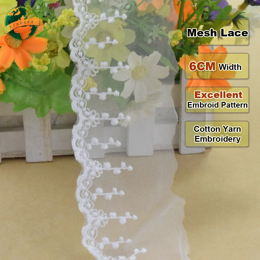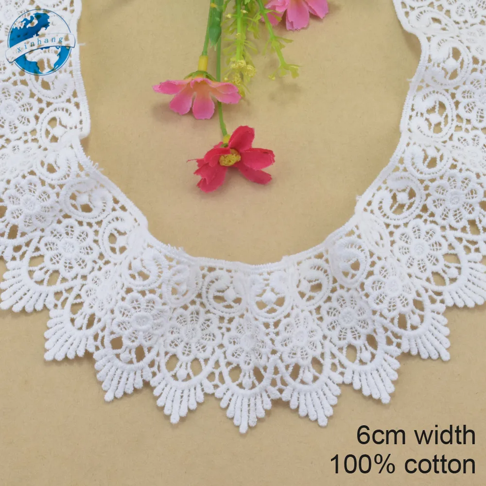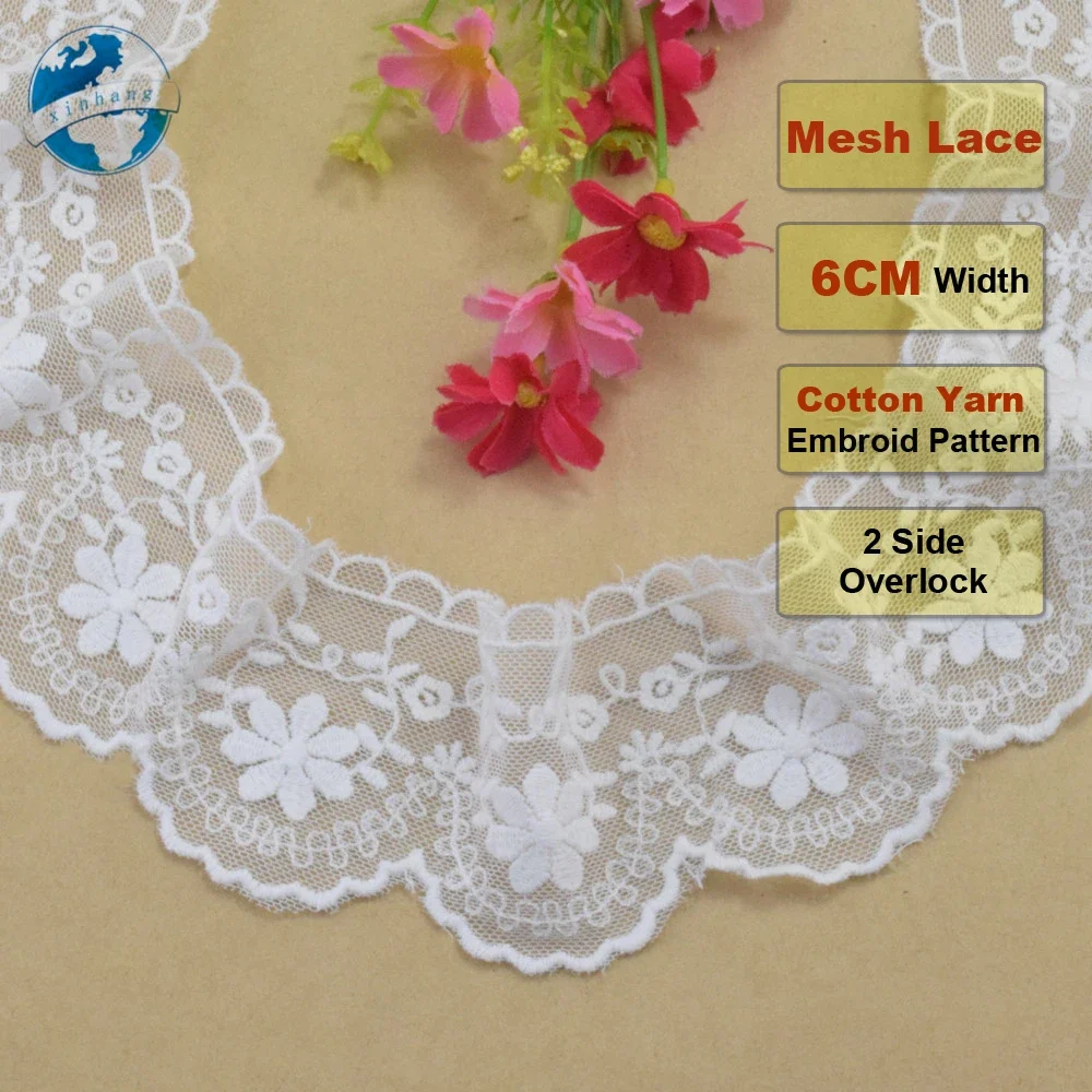 6cm Width White 100% Cotton Embroidery French Lace Ribbon Fabric Guipure Diy Trims Warp Knitting Dress Sewing Accessories#4068