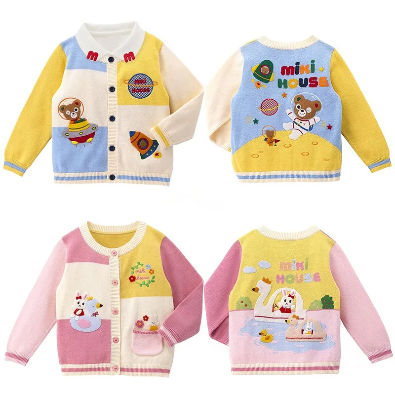 Autumn Kids Knitted Sweater Astronaut Bear Boys Sweaters Girls Cardigan Knitwear Coat Girl Knitwears Baby Girl Winter Clothes