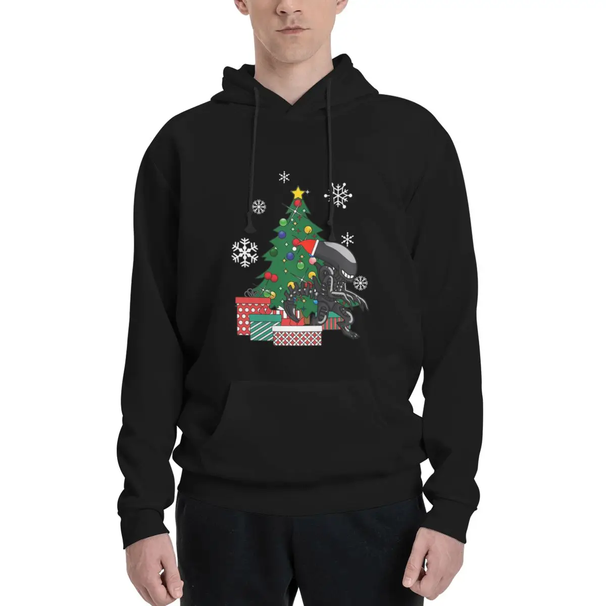 Alien Xenomorph Around The Christmas Tree Casual A Men's Hoodies Sweater