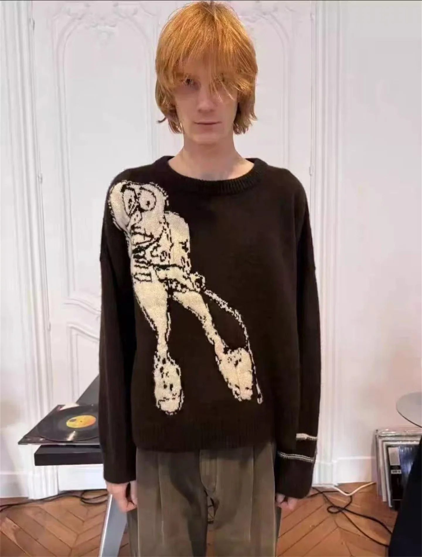 American Retro Alien Pattern Knitted Sweater round Ne Long Sve ex Knitwear Comfortable Casual Faion for Men And Women